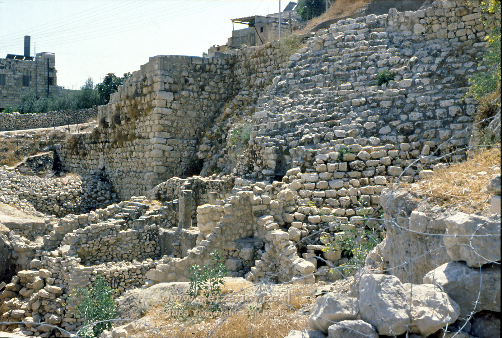 ![]() Main St., KᵊpharꞋ Na•khumꞋ, viewed from the veranda of the village Beit-ha-KᵊnësꞋët. Photograph 1983, Yirmeyahu Bën-David. |