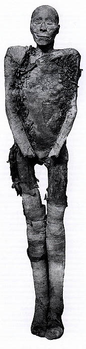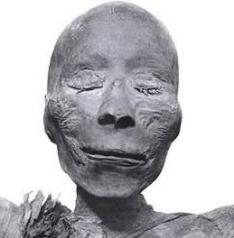 Top: cartouche, bottom: mummy – Egyptian General and Chief of Staff, later Par•ohꞋTut- Moses I, A-kheper-ka-Ra ("Resurrected is the Soul of Ra") – father of Queen-Par•ohꞋ – Khât-shepꞋset and step-father of Egyptian Prince Mosh•ëhꞋ. Click images to enlarge.