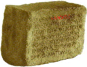 This ancient inscribed stone from the Beit ha-Mi•qᵊdâshꞋ ha-Sheini is located in Museum Tschinili-Kirschk. Istanbul, Turkey. |