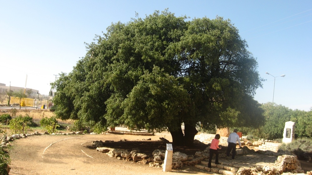 One day, as Avᵊrâ•hâmꞋ sat in the shade of the door of his tent, in the mid-day heat, in Eil•on•eiꞋ Mor•ëhꞋ, he envisioned ä'. Looking up, he saw three a•nâsh•imꞋ located atop the hill opposite him. Envisioning them, and running from the door of his tent to meet them, he welcomed them with the customary bow and greeting, "Please, a•don•âiꞋ, if it pleases you, don't bypass your workman. Take some water, rinse the dust off of your feet and have a seat leaning against the tree right there in the shade. I'll include a bit of bread with your dinner and you can eat your fill. Afterward, you can continue on, having passed my way."