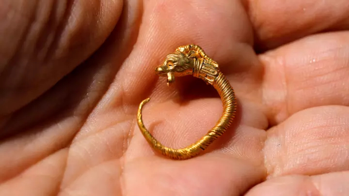 Having taken the gold earrings from their hands, he sand-casted a gold calf mask,