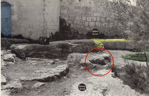 Diag. #14 – ("Tank xxix") crypt supporting northeastern angle of the çÂöÅø äÇëÌÉäÂðÄéí and part of the äÈòÂæÈøÈääÇ âÌÀãåÉìÈä. An extract from the description of this feature discovered by Warren is particularly significant: "The Souterrain [crypt] has no appearance of having been constructed for a tank; there is not a sign of plaster about, … [it] was apparently built for the purpose of raising up the Beit ha- Diag. #15 – Remains of northern rock wall in the basement of the small domed house, marks southern Wall of äÈòÂæÈøÈääÇ âÌÀãåÉìÈä (#16, tank xxiv; pp. 52 & Plan of Beit ha- Diag. #18 – Wall remains bounding the äÈòÂæÈøÈääÇ âÌÀãåÉìÈä, on the north side" (p. 58) Other Muslim destruction or removal of physical archeological remnants include:
