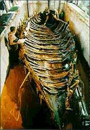 Discovered in Yâm Ki•nërꞋët, this Gâ•lilꞋ-boat's length is 8.2 m., its width 2.3 m. and its depth 1.2 m. Apparently a fishing boat, the vessel was large enough to carry 15 people, including a crew of five. Carbon-14 tests confirmed that the boat was constructed and used between B.C.E. 100 and 70 C.E. (mfa.gov.il).