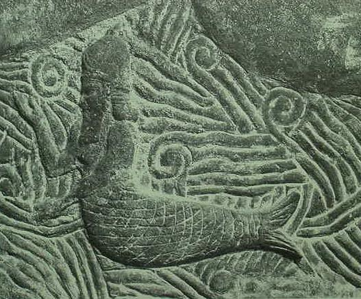 was the early Babylonian sea-god Ea, whose Sumerian [name was] Enki, and was known to the Greeks as Oannes [which] had a fish head and man's head beneath, and both a fish tail and man like legs”![]()
